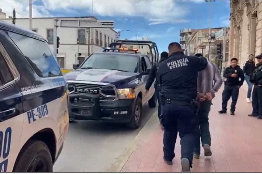 Chihuahua, Chih.- Esta mañana fue detenido en el interior de Palacio de Gobierno un hombre cuando grababa un video para Tik Tok en el que incitaba a las mujeres que participarán mañana en la marcha del 8 de Marzo a causar destrozos dentro del inmueble declarado Patrimonio Histórico.