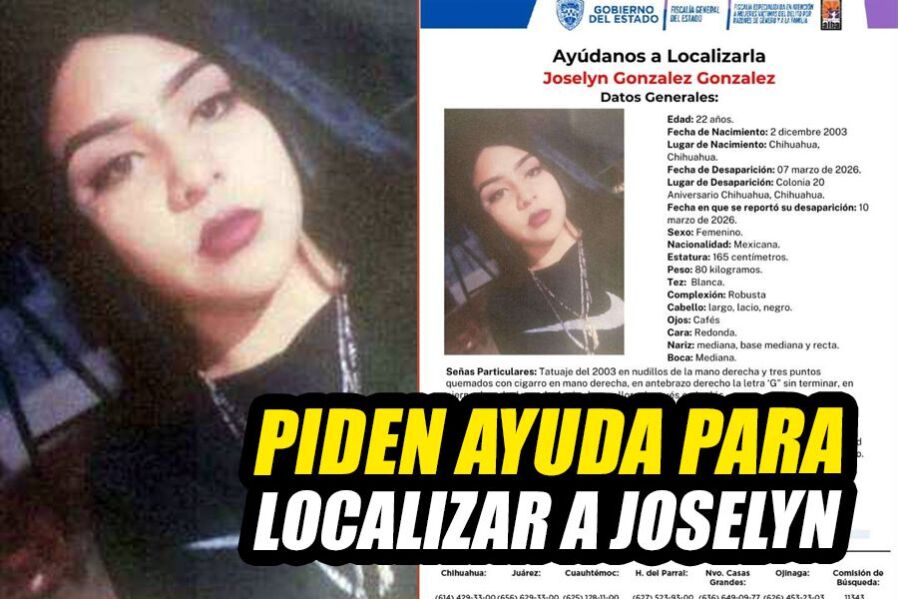 Chihuahua, Chih.– Autoridades solicitaron el apoyo de la ciudadanía para localizar a una joven de 22 años, identificada como Joselyn González González, quien fue...