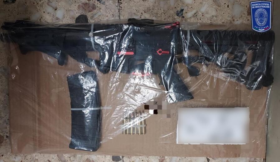 Chihuahua, Chih.- En un operativo conjunto, elementos de la Agencia Estatal de Investigación detuvieron en flagrancia a tres hombres en el Barrio de Londres, quienes dijeron pertenecer a un grupo delictivo denominado “La Empresa”, los cuales portaban fusiles de asalto y pistolas de grueso calibre, además de droga.