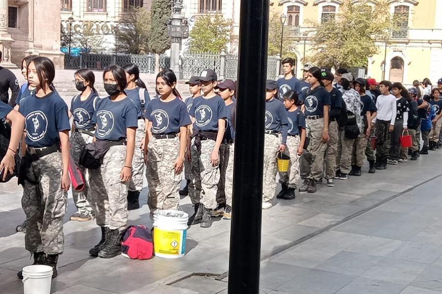 Alrededor de un centenar de jóvenes integrantes de diversas asociaciones juveniles como «Rescate Juvenil», «Legión Lobos» e integrantes de «Cruzada por la Familia A.C.», acudieron esta mañana a la plaza de Armas, y equipados con cubetas, cepillos, agua y jabón comenzaron a colaborar con las acciones de limpieza, luego de los severos daños que provocaron grupos de feministas radicales en la marcha del pasado miércoles por El Día Internacional de la Mujer.