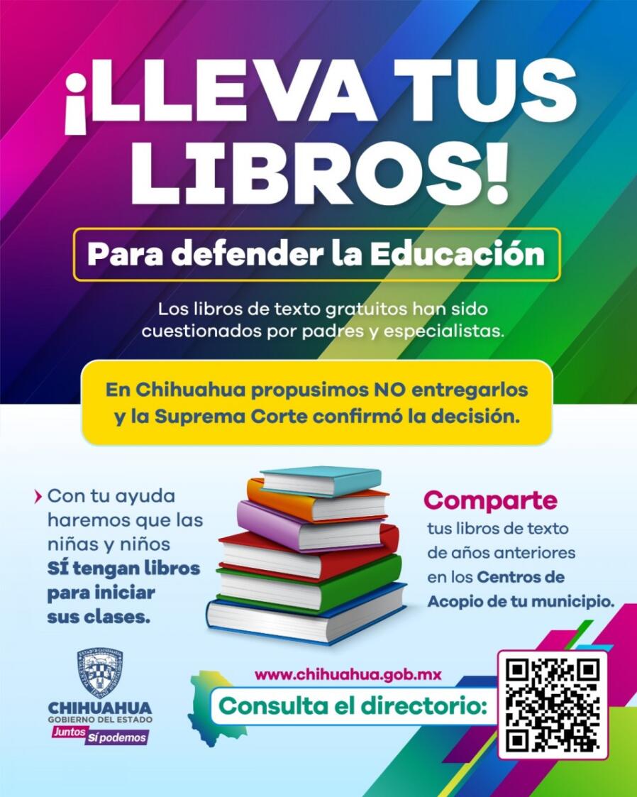 Chihuahua, Chih.- La gobernadora Maru Campos dio a conocer que ya se habilitaron cerca de 200 centros de acopio para la recepción de libros de texto gratuito de los niveles de preescolar, primaria y secundaria, que inicia a partir del próximo lunes 21 de agosto.