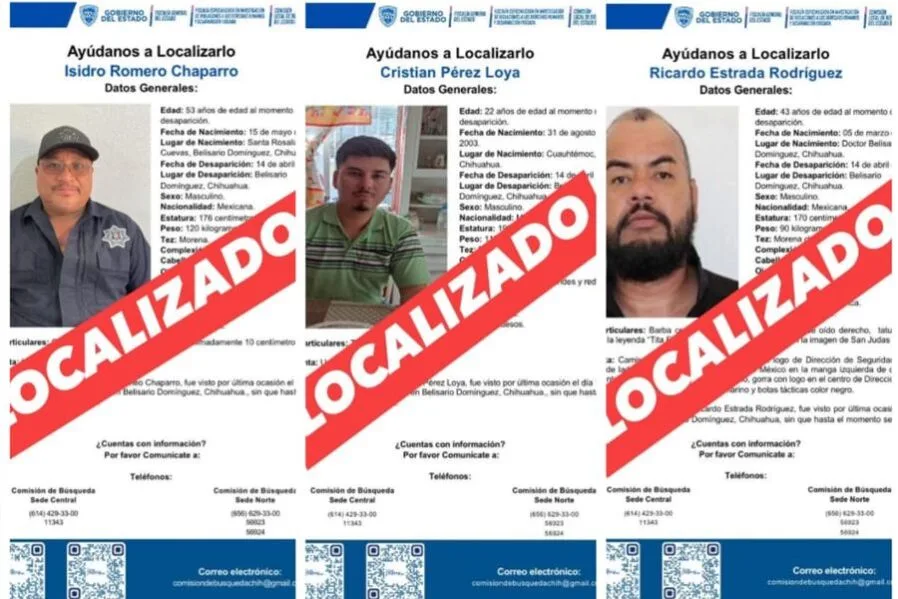 Cuauhtémoc, Chih.- Tres elementos de la Policía Municipal de Dr. Belisario Domínguez fueron localizados con vida tras haber sido privados de la libertad, de acuerdo con información...