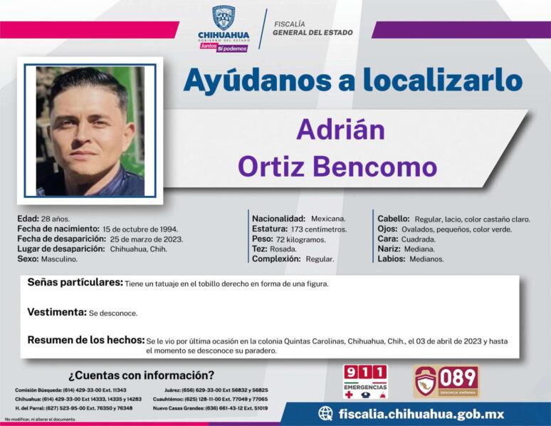 Uno de los jóvenes ausentes se llama Adrián Ortiz Bencomo, tiene de 28 años de edad.