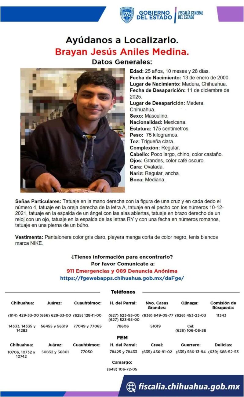 Los desaparecidos fueron identificados como los primos Brayan Jesús Aniles Medina, de 25 años de edad, y César Guadalupe Bustillos Medina, de 21 años.