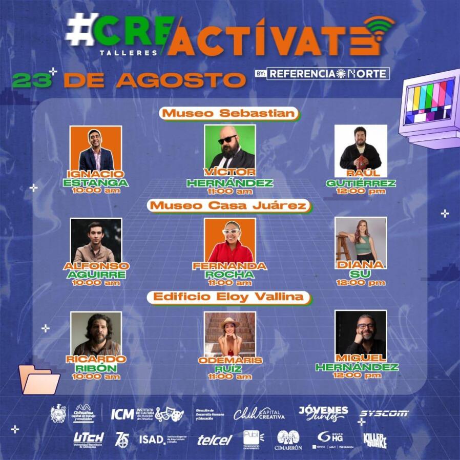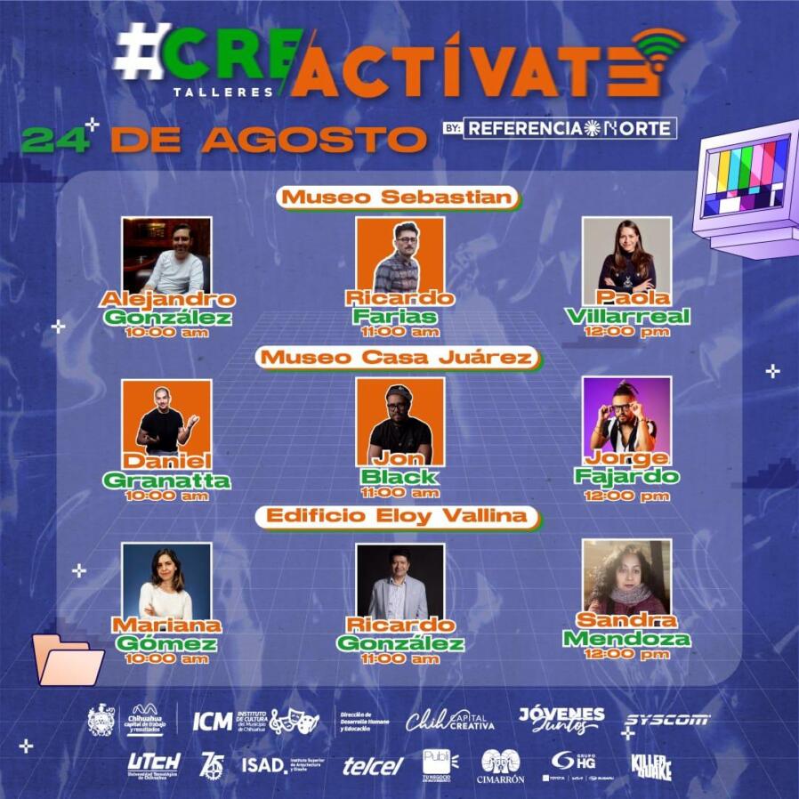 Los accesos a estos talleres son completamente gratuitos y solo necesitas registrarte en la página www.referencianorte.mx para apartar el lugar ya que el cupo de cada taller es limitado. Para más información, consulta las redes sociales del Instituto de Cultura del Municipio, Gobierno Municipal de Chihuahua y el Instragram de @referencianorte, donde se estará actualizando la información de los expositores, fechas, boletos y sedes.