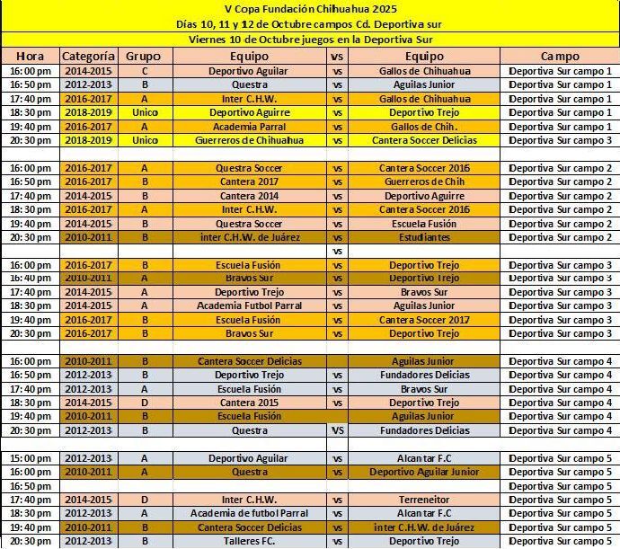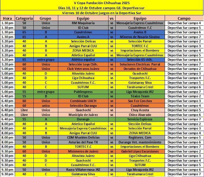 Chihuahua, Chih.- Con una maratónica jornada de partidos inicia este viernes 10 de octubre la quinta edición de la Copa Fundación 2025 de fútbol soccer en los campos de pasto sintético de la Deportiva Sur.