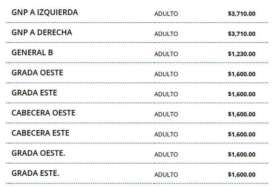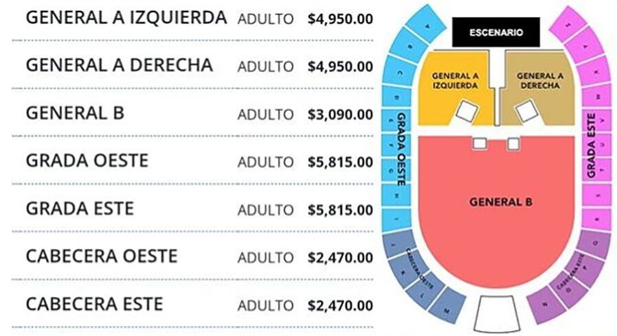 Sin embargo, en las últimas horas, los organizadores lanzaron promociones y rebajas que sorprendieron al público. Ahora, por ejemplo, la sección General B pasó de 3,090 a solo 1,230 pesos, mientras que las gradas este y oeste bajaron de 5,815 a 1,600 pesos. La zona GNP A Izquierda y Derecha, que en su momento costaba 4,950 pesos, hoy se ofrece en 3,710 pesos.