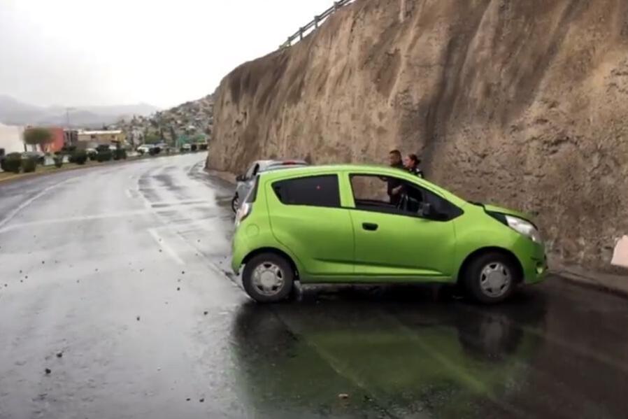 El incidente ocurrió al salir de la curva frente al Instituto José David, y debido a las condiciones climáticas lluviosas, el vehículo Ford Figo se impactó contra un señalamiento vial.