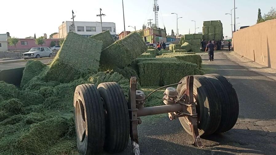 Afortunadamente el accidente no dejó personas lesionadas, pero sí un gran caos viales, ya que la pastura quedó sobre los carriles del periférico.