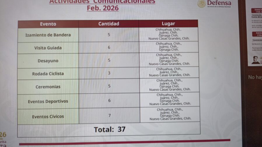 Serán un total de 37 eventos celebrados en las sedes instaladas en Ciudad Juárez, Chihuahua, Nuevo Casas Grandes y Ojinaga, según lo dieron a conocer el General de Brigada Felipe González Moreno (Comandante de la 5a Zona Militar), el Coronel de Infantería Carlos Fortunato Sánchez Cobos, y el Mayor de Infantería Luis Eduardo Rolon Balcázar.