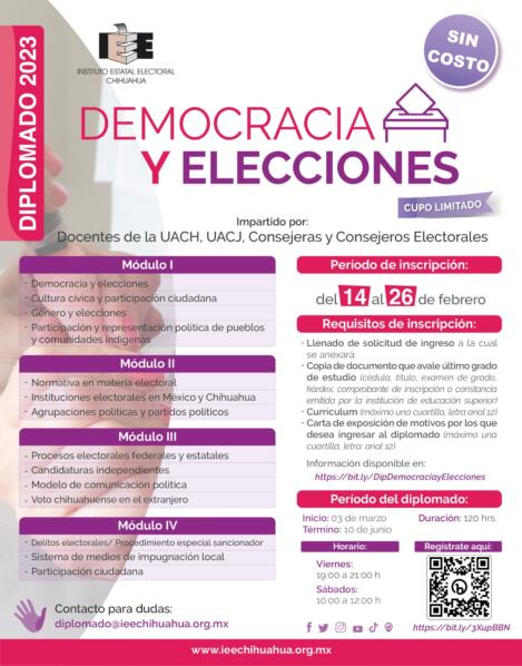 Para mayor información: https://ieechihuahua.org.mx/_diplomado_democracia_y_elecciones