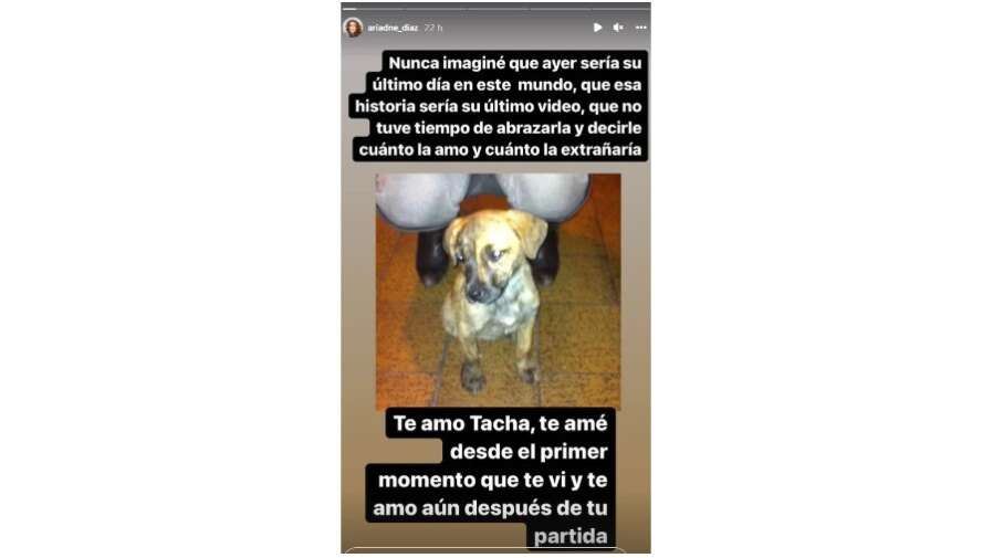 Fue mediante sus historias de Instagram donde la actriz compartió a sus seguidores la triste noticia sobre el final de su perrita Tacha.