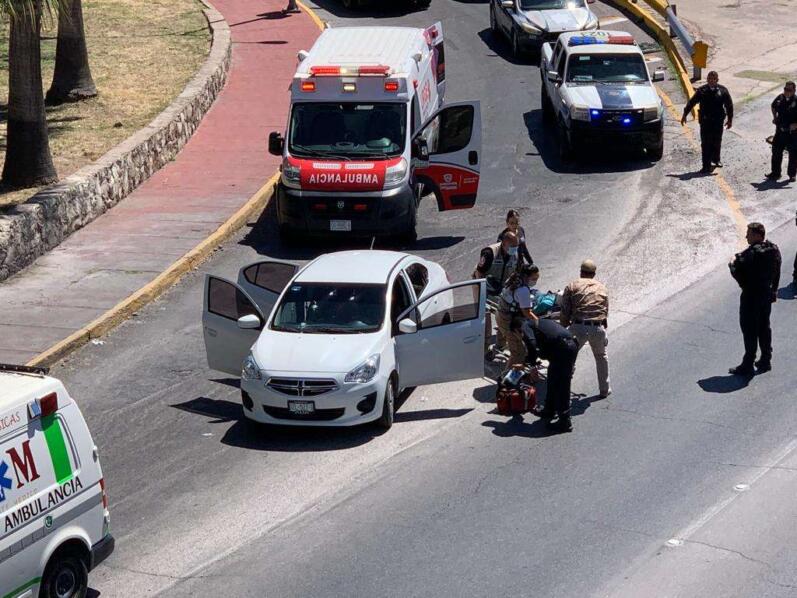 Chihuahua, Chih.- Sujetos armados dispararon en contra de unas personas que viajaban abordo de un Uber, vehículo Dodge Attitude de color blanco, cuándo bajaban la rampa de salida desde la avenida Ocampo hacia la avenida Borunda.