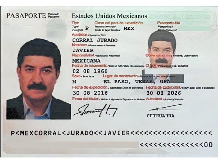 Corral Jurado difundió en su publicación su pasaporte diplomático, refrendado el pasado 7 de noviembre y el ordinario, con vigencia hasta agosto de 2026.
