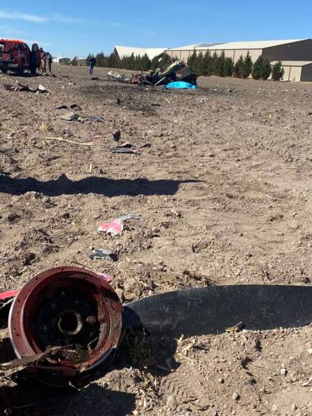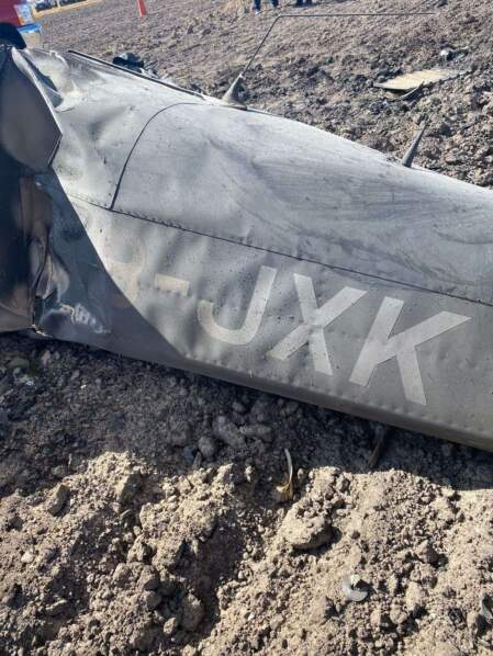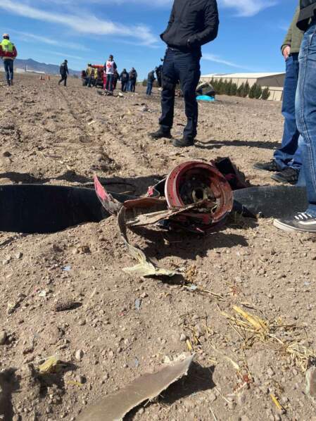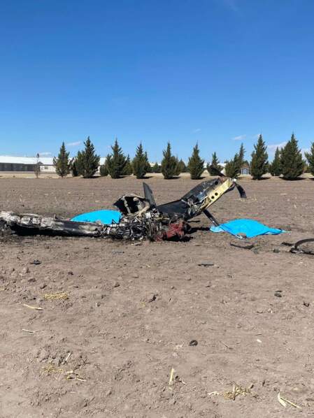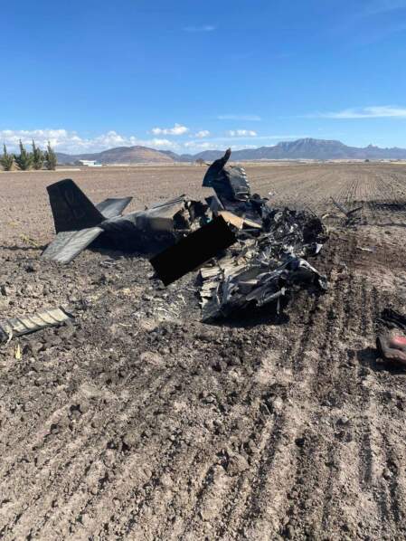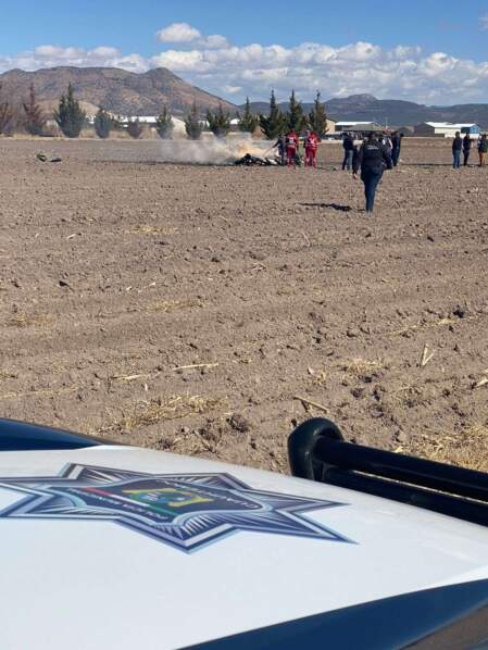Al llegar al lugar del accidente, los policías tuvieron a la vista los restos consumidos por el fuego de una avioneta marca Vans, línea RV6, con matrícula XB-JXK, de color negro, que aún estaba en llamas.