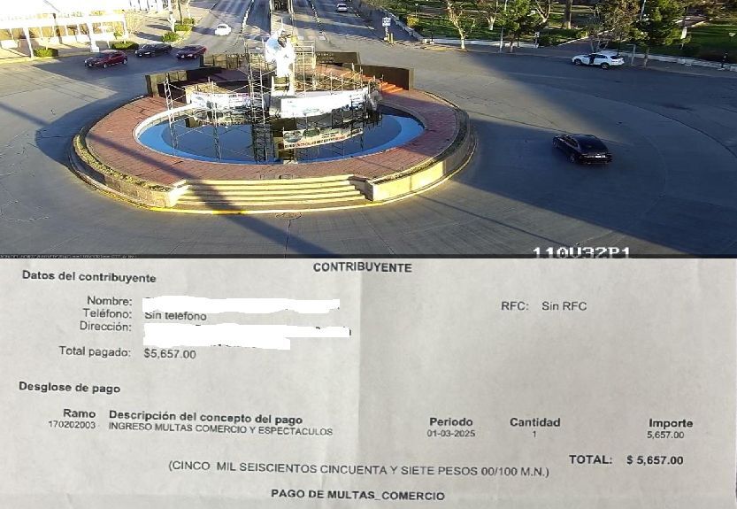 Chihuahua, Chih.- El ayuntamiento de Chihuahua aplicó una multa de 5 mil 657 pesos, a la empresa local de renta de maquinaria, que la madrugada y mañana del pasado 8 de marzo, protegió con andamios metálicos y hules el monumento a la División del Norte, específicamente del general Francisco Villa.