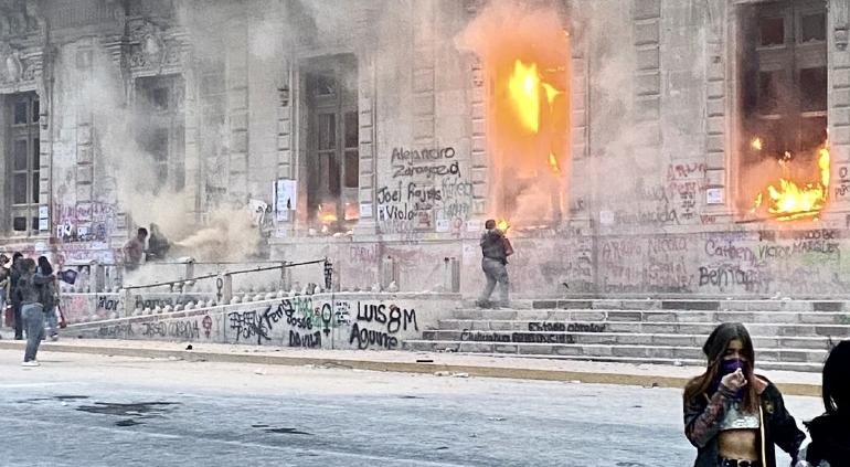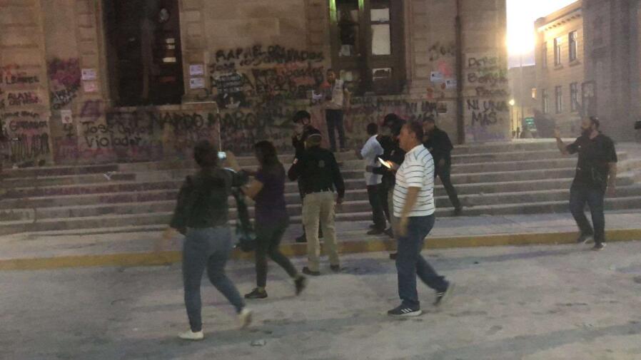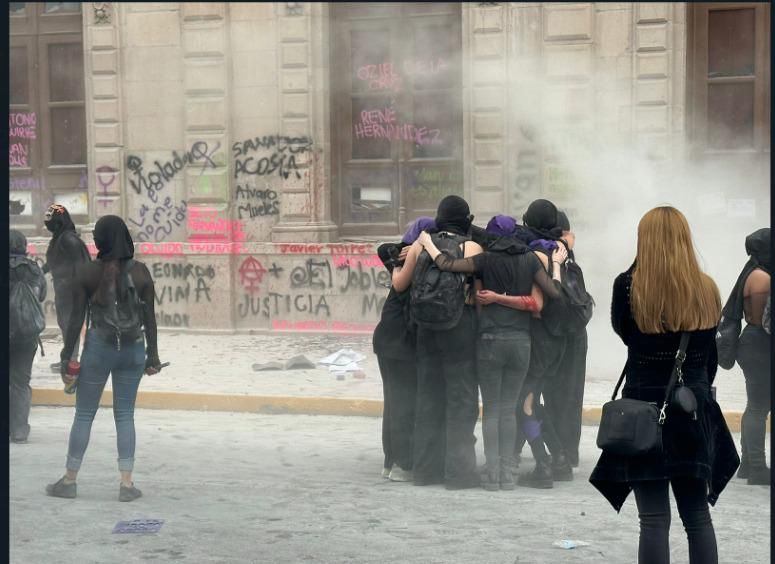 Agregaron que en la primera etapa las cosas transcurrían de manera normal, sin embargo, al acercarse a Palacio de Gobierno “la cosa se puso densa”, ya que algunas de las participantes empezaron a romper vidrios y ocasionar daños diversos.
