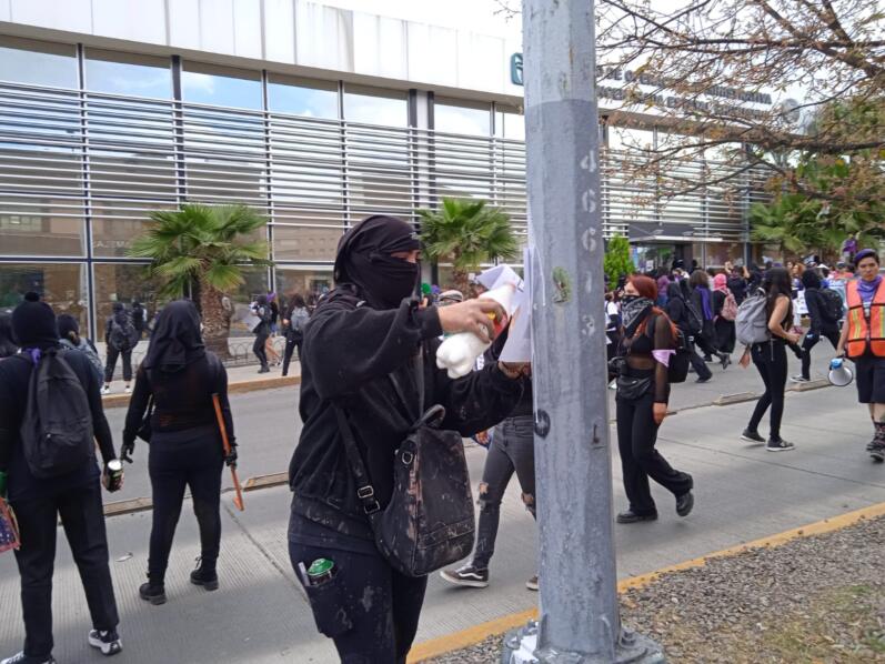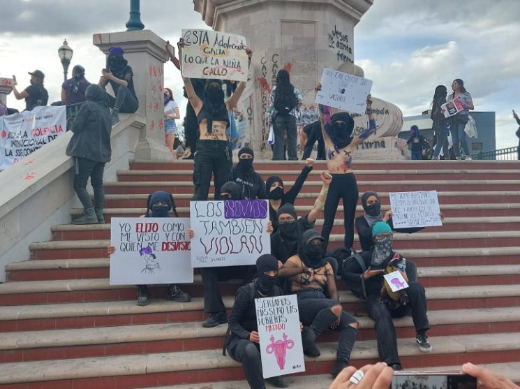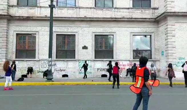 Agregaron que en la primera etapa las cosas transcurrían de manera normal, sin embargo, al acercarse a Palacio de Gobierno “la cosa se puso densa”, ya que algunas de las participantes empezaron a romper vidrios y ocasionar daños diversos.