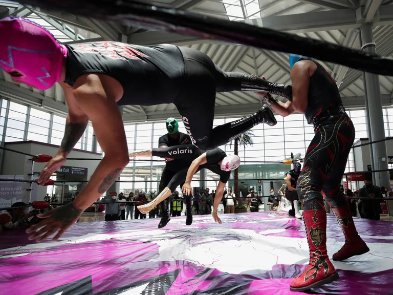 La baja afluencia del AIFA ha llevado a las aerolíneas que operan ahí a tomar medidas desesperadas para atraer a los usuarios. Una de ellas fue instalar un ring de lucha libre (Foto:REUTERS/Henry Romero)