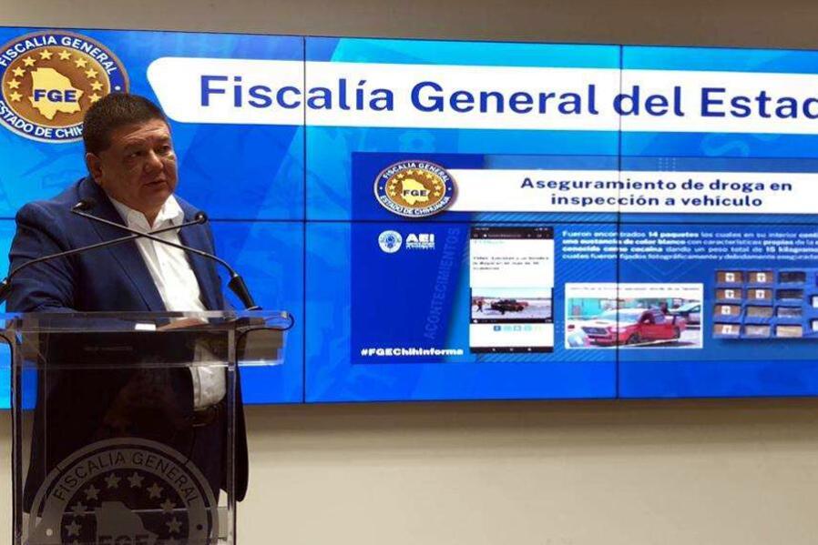 Chihuahua, Chih.- El Fiscal General del Estado, César Jáuregui, comunicó en una rueda de prensa que las autoridades han encontrado una significativa cantidad de cocaína...