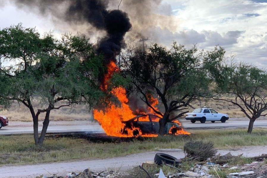 Chihuahua, Chih.- Un vehículo de reciente modelo ardió en llamas la tarde de este sábado sobre la carretera a ciudad de Aldama. Se trata...