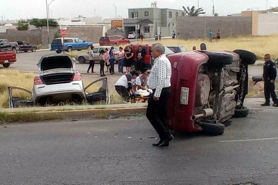 Chihuahua, Chih.- Un aparatoso choque volcadura se suscitó esta mañana sobre el periférico R. Almada, donde una mujer resultó con lesiones de consideración. El...