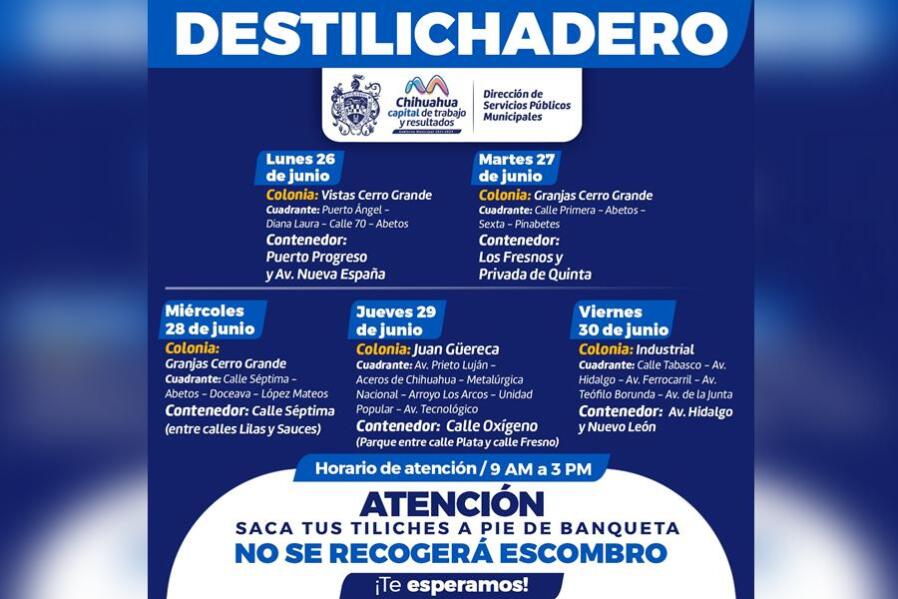 Chihuahua, Chih.- El Gobierno Municipal que preside el alcalde Marco Bonilla, a través de la Dirección de Servicios Públicos Municipales, informa a la ciudadanía...