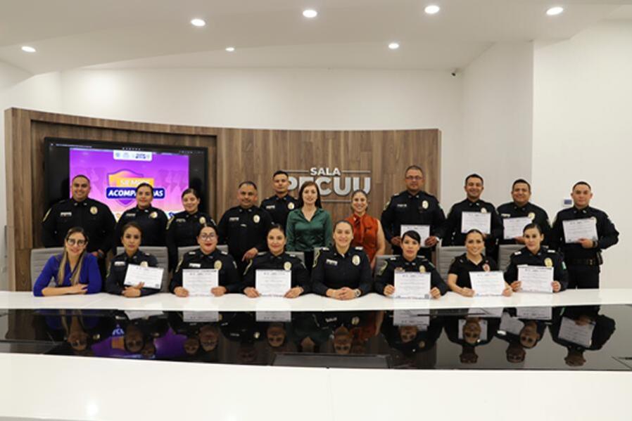 Chihuahua, Chih.- Como parte del programa “Siempre Acompañadas”, de la Dirección de Seguridad Pública Municipal (DSPM), 70 mujeres y hombres policías, recibieron un reconocimiento...