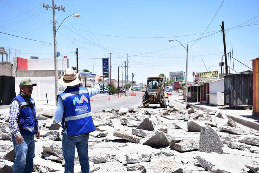 Chihuahua, Chih.- El Gobierno Municipal, encabezado por Marco Bonilla, comenzó con los trabajos de rehabilitación en pavimento con concreto hidráulico de la avenida Nueva...