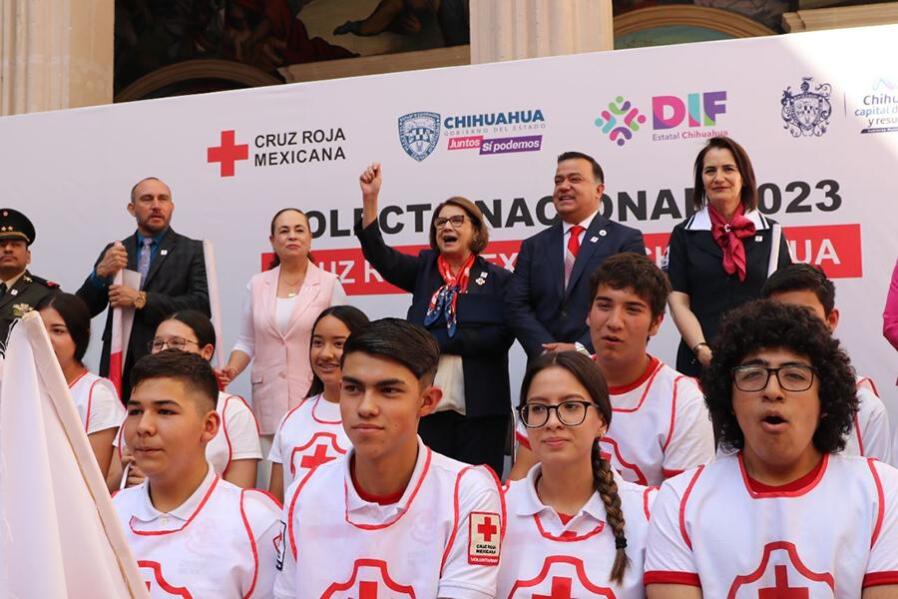 Chihuahua, Chih.- El palacio de Gobierno fue la sede para el arranque de la colecta anual de la Cruz Roja Mexicana 2023, que bajo...