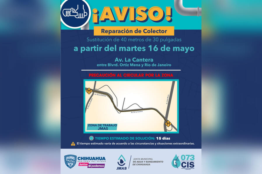 Chihuahua, Chih.- La Junta Municipal de Agua y Saneamiento (JMAS) de Chihuahua informó que el próximo martes 16 de mayo iniciará con los trabajos...