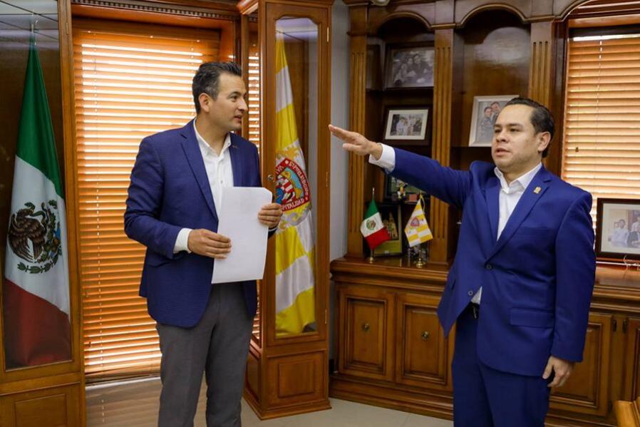 Chihuahua, Chih.- El alcalde Marco Bonilla Mendoza, tomó protesta a Luis Alberto Báez como nuevo Director de Mantenimiento Urbano del Municipio, quien dará continuidad...