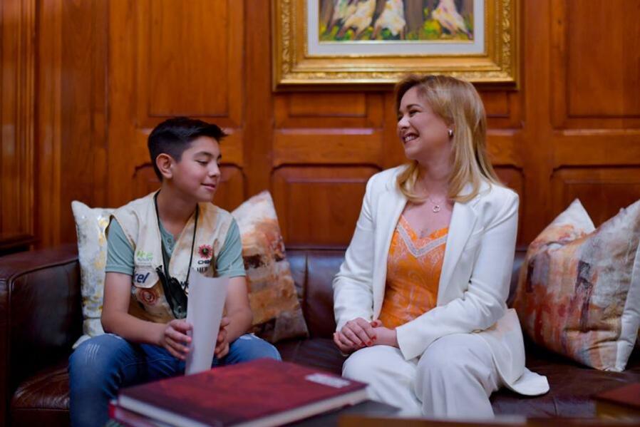 Chihuahua, Chih.- En el marco de los festejos por el Día de la Niñez, la Gobernadora Maru Campos recibió en su despacho de Palacio...