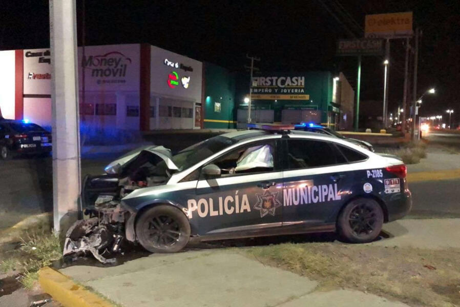 Chihuahua, Chih.- Un agente de la policía municipal resultó con heridas de consideración al impactar la unidad que conducía contra un poste de concreto....