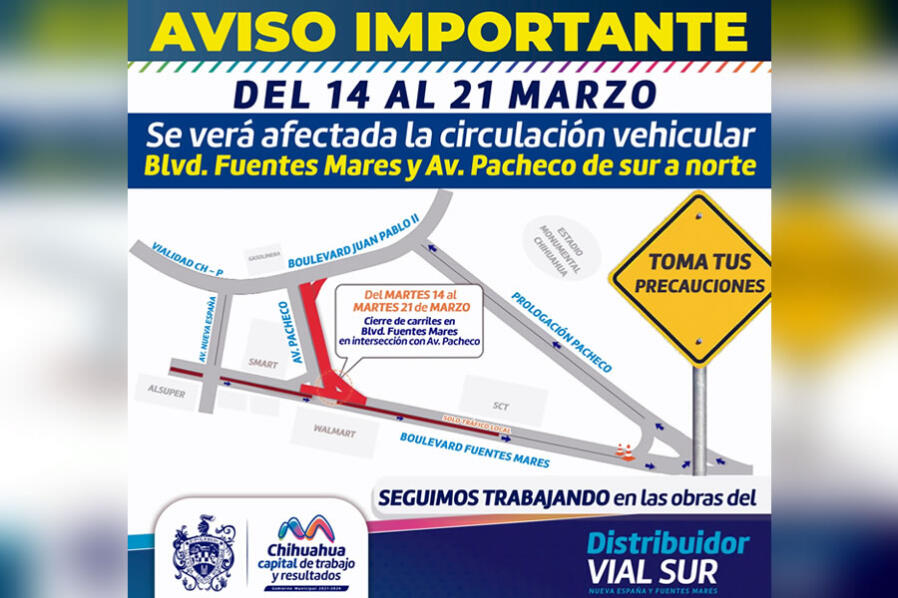 Chihuahua, Chih.- El Gobierno Municipal de Chihuahua, a través de la Dirección de Obras Públicas, anuncia que a partir del día martes 14 hasta...