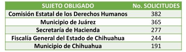 Se indicó que de enero a marzo se han realizado 5,128 solicitudes donde 5 sujetos obligados recibieron el mayor número de solicitudes de información pública siendo los siguientes: