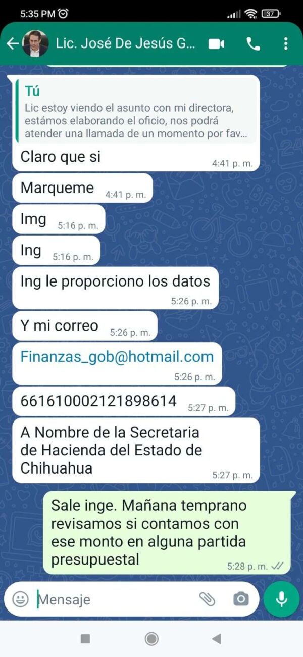 Chihuahua, Chih.- La Secretaría de Hacienda alerta a los directivos de diversos planteles de educación básica, así como a los alcaldes y a la población en general a no dejarse engañar por estafadores, quienes crean perfiles falsos en Facebook a nombre del secretario de Hacienda, José de Jesús Granillo Vázquez.