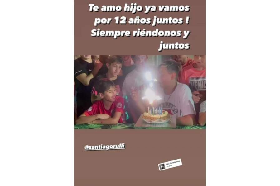 «Feliz Cumpleaños Hijo Mio!!. Santi… Llegaste a mi vida hace 12 años para llenarme de Amor y demostrarme que mi corazón es capaz de amar sin límites. Me hace muy feliz verte crecer. Deseo que nunca te rindas y que todo lo que sueñes se haga realidad. Hemos vivido tantos momentos hermosos que llevo grabados en mi mente y corazón… Porque sigamos creciendo y disfrutando de este viaje juntos. ¡Te amo Principito!», se lee.