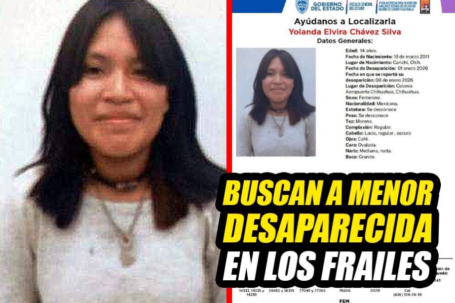 Chihuahua, Chih.– Autoridades estatales solicitan el apoyo de la ciudadanía para localizar a Yolanda Elvira Chávez Silva, menor de 14 años de edad, quien...