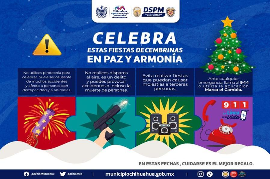 Chihuahua, Chih.- El Gobierno Municipal, a través de la Dirección de Seguridad Pública, exhorta a la comunidad a abstenerse de realizar disparos con armas...