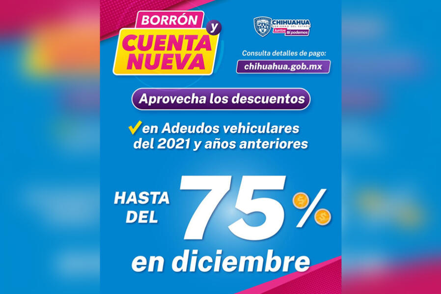 Chihuahua, Chih.- Cerca de 27 mil personas han hecho uso del beneficio del programa “Borrón y Cuenta Nueva” por parte de la Secretaría de...
