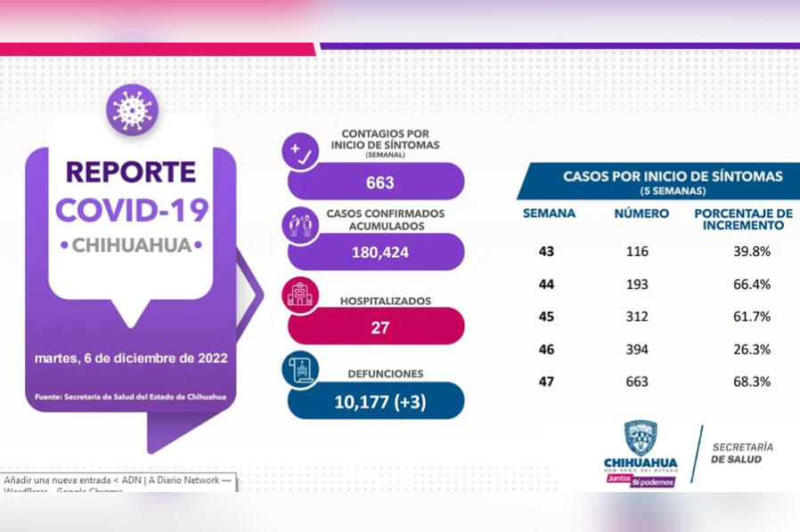 Chihuahua, Chih.- El Gobierno del Estado, a través de la Secretaría de Salud Chihuahua, presenta este 6 de diciembre el reporte COVID-19, que registra...